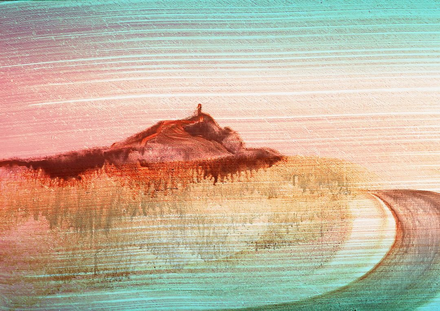 This image was constructed mainly from large, free mark-making then collated digitally. Moving away from traditional styles of painting, this image is part of a series that plays and explores ways of constructing images through layered materials and processes. Enjoying the endless affects and possibilities..